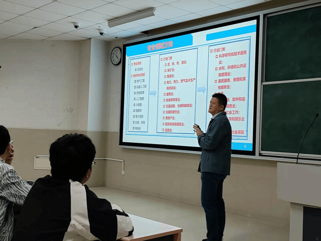 10月28日16:10-18:00,山东胜利通海集团东营天蓝节能科技有限公司副总经理吴新文高级工程师为麻豆av自动化和机器人工程两个专业的2024级同学讲授了《专业导论》课程。
