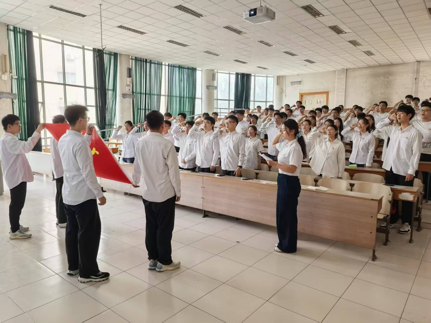 活动中,全体毕业生党员面向鲜红的党旗,高举右拳,重温入党誓词,回顾入党初心,唤醒青年党员内心深处对党的承诺,坚定为党的事业奋斗终生的决心,铭记入党誓词,牢记共产党员的责任与担当。