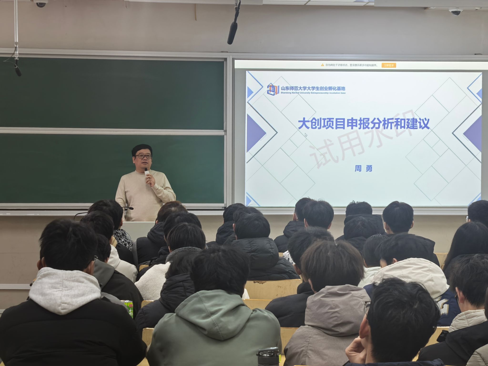 培训会上,周勇紧扣“大创计划”项目申报核心要求,围绕选题思路、类别界定、撰写规范及科研纯粹性构建等关键维度,开展系统深入地讲解。他结合自身指导实践与典型案例,通过获奖项目深度剖析、常见问题梳理总结、核心要点精准提炼等方式,清晰拆解了项目申报全流程的重点任务与攻坚方向。针对创业类、创业公益类、创新训练类三大项目类型,分别给出靶向指导:创业类项目需聚焦创新性与可行性,紧扣人工智能、元宇宙等前沿领域,精准切入市场痛点;创业公益类项目可从目标定位、方法创新及差异挖掘发力,聚焦弱势群体需求;创新训练类项目建议依托指导教师科研方向,扎根民生热点与社会刚需。针对申报过程中普遍存在的选题陈旧、类别模糊、AI使用不规范等问题,他提出具体改进方案,强调申报书需论证严谨、结构完整、格式规范,在合理篇幅内凝练核心价值,突出创新亮点与项目特色。现场互动氛围浓厚,学生们反馈收获良多、启发深刻。