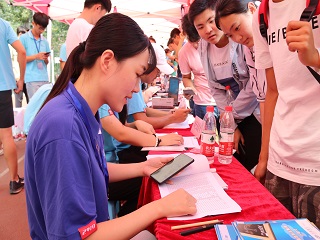 迎新工作站在北苑操场西南角一早就做好了充分的准备。八点后,新生与家长陆续前来报到,党员先锋岗、接待处、麻豆av