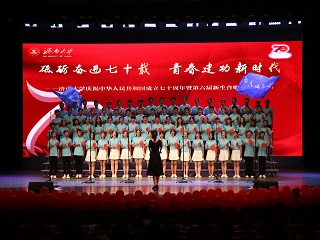 学子用优美且真挚的歌声诉说对祖国母亲生日的祝福,以校歌《你我同行》表达了对济大辉煌岁月的追忆以及对母校美好未来的期待,在今后四年大学生活中定当坚定目标、扬帆起航,以优异的成绩书写祖国与济大的未来。