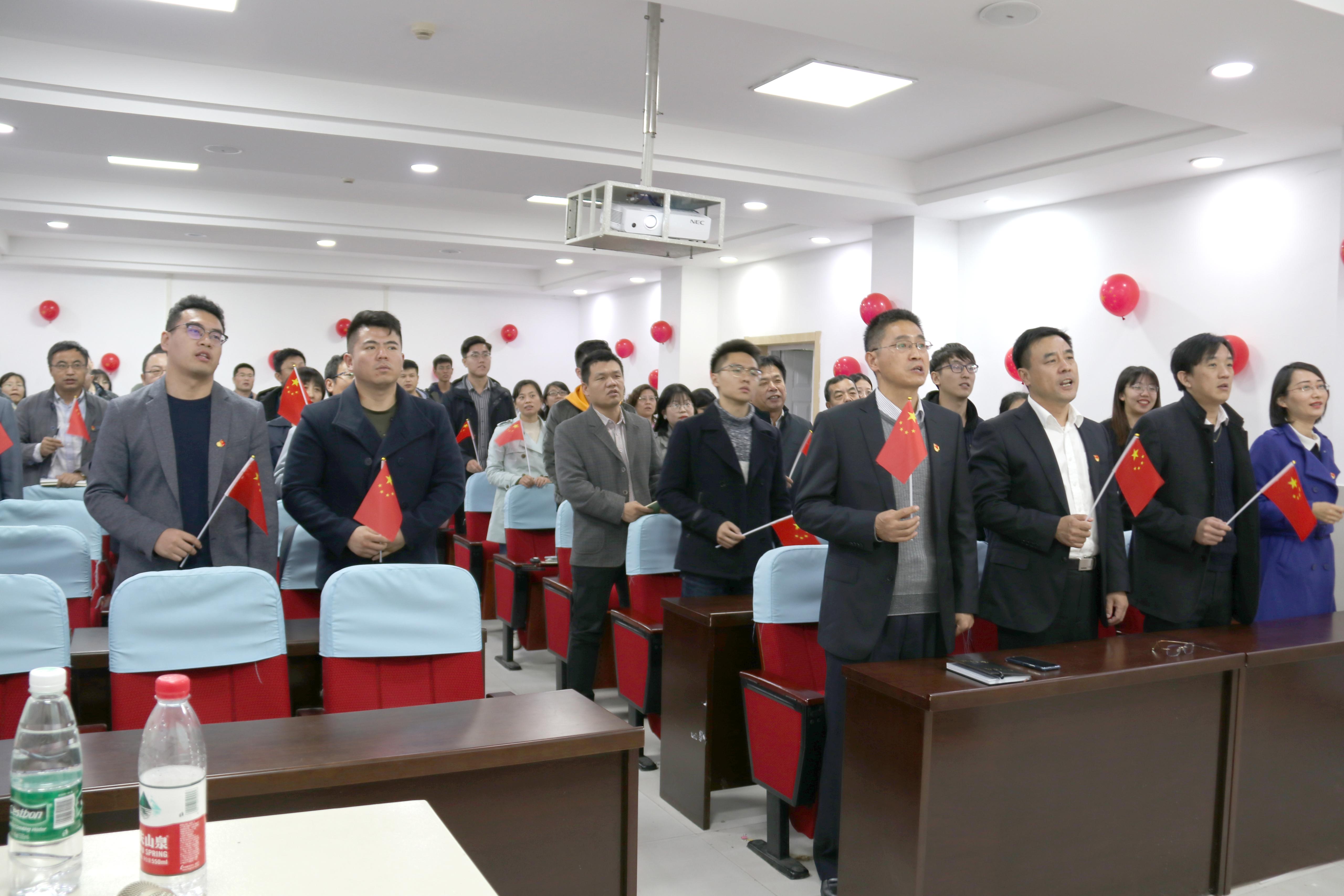随后在党委副书记、院长崔焕勇的领誓下,与会党员面对鲜红的党旗,高举右拳,字字铿锵,重温入党誓词,表达了“不忘初心、牢记使命”的信念和决心。