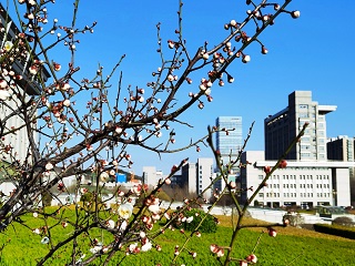 还记得在甲子湖,昼时远望一片碧青,暮时映衬万里红日,夕阳西下,甲子湖也像是妆了一抹胭脂的薄媚,宛如那“轻罗小扇扑流萤”的美人,远望只得心神宁静。君是否还曾记得,那迎春傲姿绽放,诉说着春天到来的喜悦;那杨柳抽出嫩芽,拂去石桥上冬日的哀伤;那梅花随着春日的暖阳,带来鲜艳的春,挥去单调的冬。济大与春,期待诸君归来!