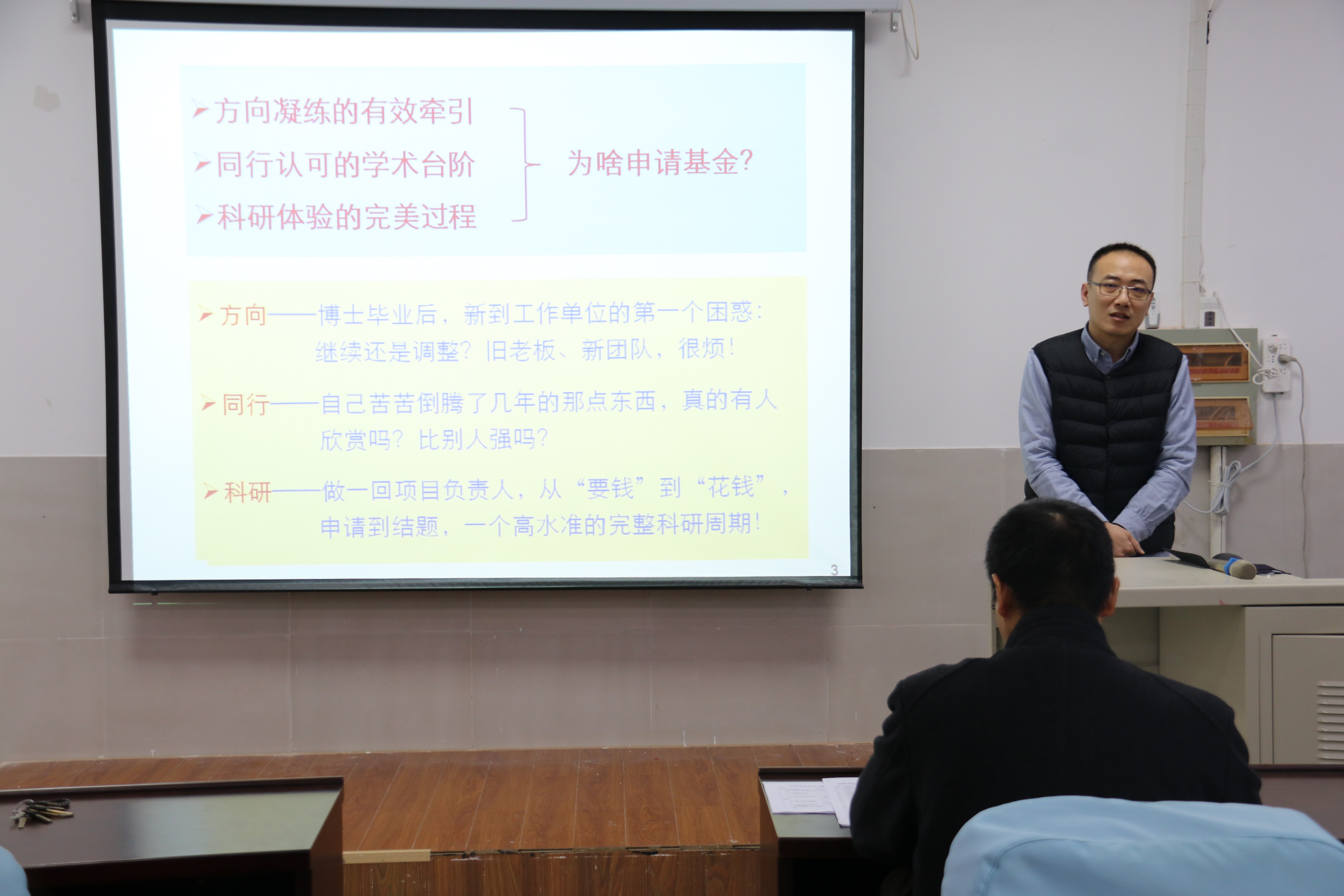 李岳炀副教授、于刚博士结合自己申报国家基金的经历,分别就国家基金面上项目和青年项目的申报,同与会人员做了全面、深入的分享和交流。