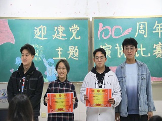 本次活动设立满分一百分,评委们需分别从不同角度对选手进行打分,如演讲内容、流利程度、台上互动、仪容仪表等方面,一等奖获得者将有机会进入校级比赛。比赛还未开始,选手与观众就早早的来到了会场,表现出了对本次比赛的期待。比赛开始,主持人介绍比赛目的与规则,选手们有序上台,展示自己对党的认识与热爱,展现了青年人心中对中国共产党深刻的情感。选手们讲的激情洋溢,观众们听的热血沸腾。最终经过评委们的打分,三类奖项全部选出,其中,高子轩和周进在比赛中表现优异,荣获一等奖,李晓天等人获得二等奖,杨中华等人获得三等奖。在同学们的掌声中各位主席为获奖选手颁奖并合影,本次演讲比赛圆满结束。