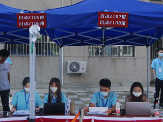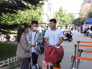 19级、20级的志愿者同学们早早等在了校门口,为前来报到的同学们提供接送、引导、以及行李搬运服务。在报到点,每个报到窗口有两名志愿者同学为新生办理报到入学所需的种种手续。考虑到新生入学所需材料繁杂,为方便新生报到,避免不必要的麻烦,每个报到窗口还配备了一名志愿者同学负责整理新生递交的入学材料。志愿者同学们分工明确、合作得力,工作有条不紊;报到点前迎来送往,好不热闹。