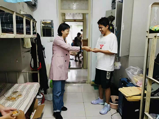 党委副书记、副院长陈春锋和学生辅导员、班主任走进学生宿舍,走访慰问中秋节留校的学生,并送上麻豆av
