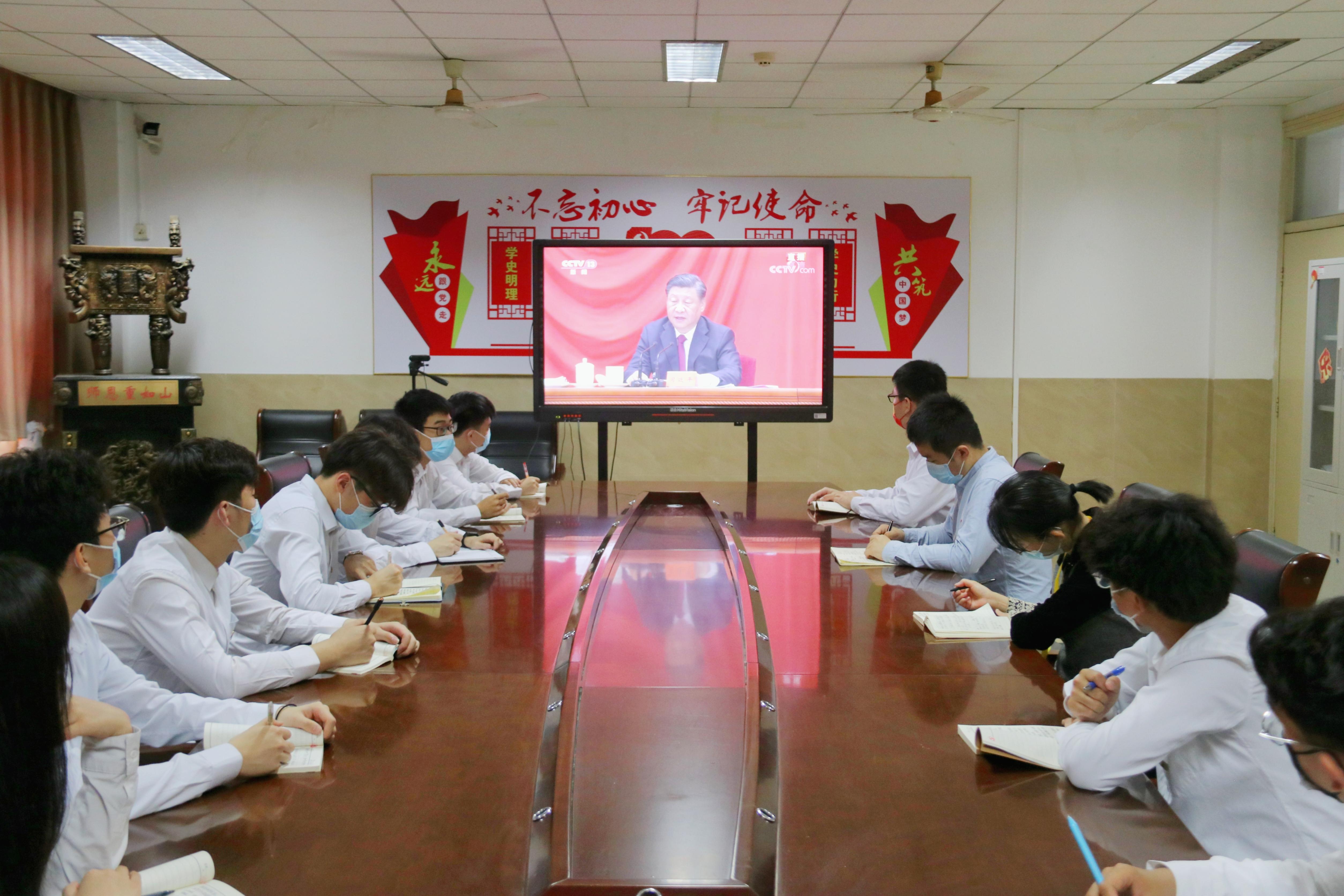 领导、组织团员团干部、学生会组织工作人员、学生社团、青年学生代表等,在1教1108会议室,全程观看了庆祝中国共产主义青年团成立100周年大会实况直播。同时,麻豆av