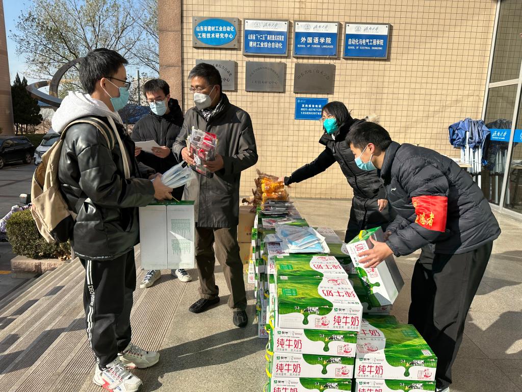 党委书记夏卫东在现场为大家发放慰问品并勉励考研学生。他说,同学们通过多年的刻苦学习,掌握了扎实的专业基础知识,多年的知识积累将在此次考试中得以展示。希望同学们在考试时沉着冷静、灵活应对、从容作答。祝愿每位同学都能发挥自己的实力、考出好成绩、考入自己理想的研究生学校。