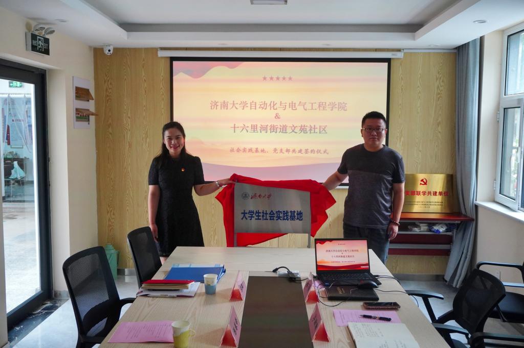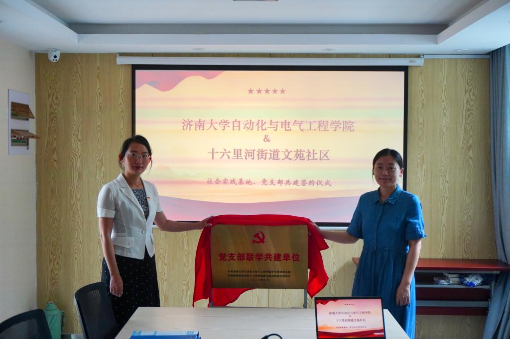 学生第四党支部与十六里河街道文苑社区综合委员会签署党建联学共建单位协议。双方代表共同为基地、单位建设揭牌。