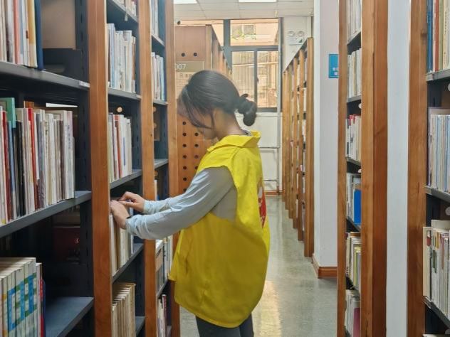 志愿者们在校门口集合完毕,分组前往济南市图书馆。抵达后,在图书馆工作人员的指导下,志愿者们接受了简短培训,随后迅速投入到图书分类、整理和上架等工作中。活动过程中,志愿者们分工协作,认真仔细地将每一本图书归位,力求为读者营造整洁有序的阅读环境。