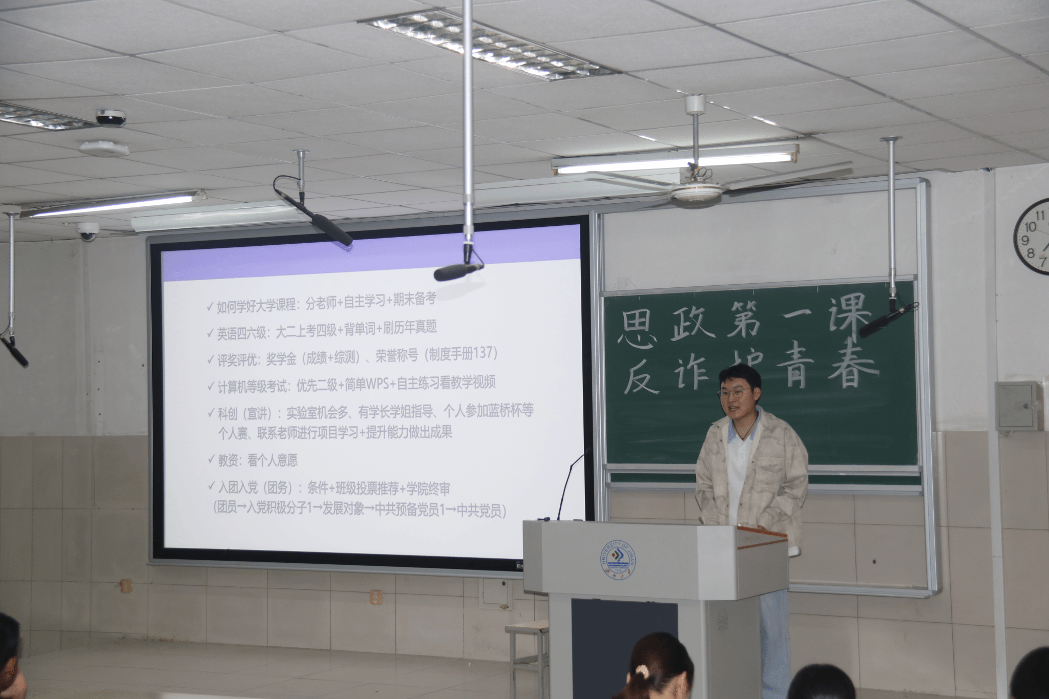 团务中心的负责人为同学们带来了“思想政治引领第一课”,课程紧扣时代脉搏,深入阐述了新时代青年学生的历史责任与使命担当,使同学们自觉将个人理想融入到国家和民族的伟大梦想之中,奋力书写为中国式现代化挺膺担当的青春篇章。这堂有温度、有深度的思政课,为同学们新学期的成长成才奠定了坚实的思想基础。