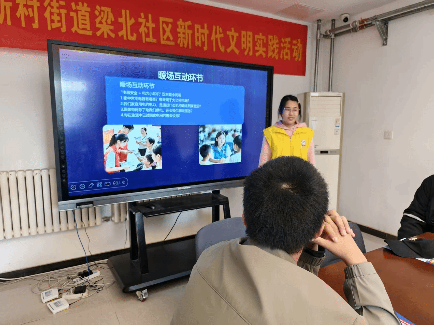 活动当天,志愿者们分为两组同步开展工作:一组提前到达社区服务站布置宣讲场地,另一组有序引导青少年安全抵达现场。宣讲环节中,志愿者结合冬季用电特点,用通俗易懂的语言讲解了家用电器的正确使用方法、常见用电误区及火灾应急知识,并通过互动问答增强青少年的安全防范意识。同时,活动还介绍了国家电网的职能与电气工程专业背景,帮助青少年拓宽对电力行业前景的认知。