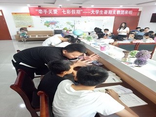 通过为他们辅导作业、预习课程,不免发现,有些孩子基础扎实,只是缺了些良好的学习习惯,并不曾审清题目,便匆匆开始做题,耗费精力,得不偿失;有些孩子对学习十分热忱,成绩却难以提高,无力苦恼,自责不已。这些渴望学习的孩子们,我心中给予诚挚的敬佩之情,他们身上坚韧的品格让人不自主被感染,为之动容,为其鼓舞,其情可叹。尤令我印象深刻的是那个即将念初二的可爱女孩儿,看见我们其中一人经过,便拉其求问,热衷学习于英语与数学,尽力汲取知识,不曾停歇。我们深深为她触动,一番讨论后,专门分配一个志愿者在其周围辅导,便于助其解决疑难,加以预习,只愿她不断进步,不枉自己的一番努力。