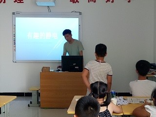 下午四时,志愿者们为孩子们准备了有关静电的趣味实验。特色课堂上,志愿者利用社区提供的多媒体讲解ppt《有趣的静电》,简要介绍静电常识及静电小实验,为孩子们圆满完成实验、体验静电现象做好铺垫。讲解结束后,志愿者们邀请两个小朋友参加以做先行示范,由此鼓励其他孩子上前操作,几个小朋友踊跃报名,争做先行者。随后,其他孩子受到鼓舞,纷纷上前参与,欢声笑语,其乐融融。志愿者们在一旁帮助他们完成实验,并保证他们的安全,同时确认每个人都参与其中,争取不落下任何一个孩子。