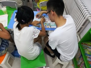 开班仪式圆满举办后第二日,我们便正式上课。早上八时,我们在楼下迎接家长及孩子们,不久便有家长牵着孩子的手缓缓向我们走来。我们与家长交流一二后,拉着孩子的小手前往教室。我们按照前两日准备的课表,对孩子们进行了一天的辅导,耐心细致,井然有序。