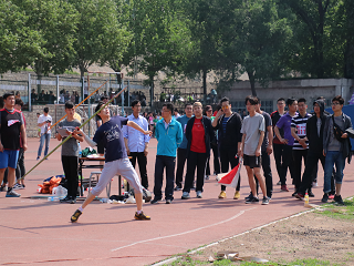 标枪比赛挑战的不仅仅是技巧的运用,更是爆发力与毅力。比赛开始前,运动员们都在认真的做着准备活动,确保自己在比赛中能有出色的发挥。比赛正式开始,张玉虎老师在观众们和鼓手的加油助威下投出了标枪,这是一次完美的瞬间爆发。标枪像被施了魔法一样,在空中划出了一道完美的弧线,场外所有人的目光都随着枪移向了落地点,同学们的欢呼响彻全场。最后,张玉虎老师凭着超常的技巧,赢得了教工男子青年组标枪决赛的第七名。