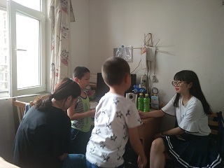 早上7点10志愿者们准时在济大西门集合前往清河新居,接受辅导学生的家长热情的迎接了志愿者们,并带入家中配合志愿者们的工作。接受辅导的为学前班小温同学,开始小朋友积极配合志愿者工作,努力学习课程,完成作业。工作进行到一半时,小朋友开始淘气,不再配合学习,但在家长劝说以及志愿者们的耐心辅导下,工作完美结束。随后,小朋友家长对志愿者表示非常感谢,并期待志愿者再一次到来,本次活动圆满结束。