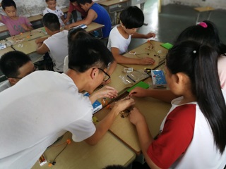 五子棋以小型竞赛的形式在班级内开展,增强学生们的思维计算能力,折纸为小班教学,多引导孩子自己动手,培养孩子的空间想象能力,美术课利用了彩色铅笔,素描纸等教具,开发了孩子们的想象力并激发了孩子对色彩的敏感性,电路课安全简单,激发了孩子们对做实验的积极性,同时使孩子们了解到电的危险性,音乐课发掘了部分孩子的音乐天赋,促进学生全面发展,电磁实验使孩子了解了“磁的概念”,亲自动手组装小零件,体会物理学的奥秘。实践团的支教老师们努力将课程学习和课堂互动相结合,确保课堂氛围的活跃性以及课程教学的高效性。
