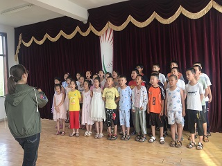 为了从小培养孩子们的爱国主义,培养他们对音乐的兴趣,了解音乐的力量和魅力。今天下午,我们开设了一节特色课堂,教给孩子们唱《伟大的国家,伟大的党》,歌唱祖国。上课时间到了,志愿者老师先给孩子讲解了一下这首歌的创作背景,接着,志愿者老师随着伴奏演唱了一遍歌曲,让孩子们对这首歌的旋律有个大致的了解。然后孩子们随着志愿者老师一句句的跟唱,在志愿者老师的教导下,孩子们逐渐能在志愿者老师的带领下唱出整首歌,孩子们稚嫩的声音萦绕了整个教室。