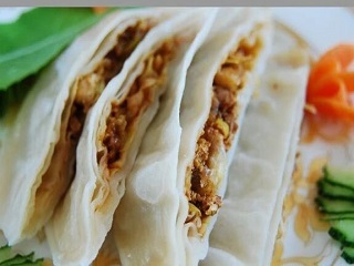 为进一步了解鸳鸯饼,我们通过网络了解到了它的历史及传承。清代乾隆年间,著名书画家郑板桥出任历史名邑——山东范县县令。范县地处鲁西,继承了山东人喜面食的传统。古城鸳鸯饼还跟郑板桥有一段典故,相传在郑板桥小的时候家道中落,由乳母费氏一手养大。费氏对板桥视为己出,在灾荒年景,总是驮着他上街买饼给他吃。故板桥后写有《乳母诗》云:“食禄千万钟,不如饼在手。”以此表达对乳母的怀念以及感恩,正因如此,郑板桥对饼情有独钟,赠诗赞誉“一碧青葱肉中藏,二面千层口中香。三生犹得佳肴味,四季鸳鸯美八方。”