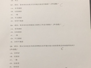 上午八点半调查活动正式开始,调研队员们制作打印社区环境调查问卷,在小区内分发、填写、收取、分析社区环境意见调查问卷,整理密集意见,报送物业相关部门,请求相关管理部门针对居民合理的、比较集中的意见,尽快做出相应的整改措施。社区居民知晓是为了社区环境保护问题,对于调查问卷的填写积极配合。问卷收集完成后队员们将问卷数据整理汇总,送至物业及社区管理处,管理人员听完来意,对我们调研小队的行为表示赞赏,并表示在发展中的小区非常需要居民们这些关于切身问题的建议,这也正是建设美好小区的关键点,会认真考虑居民需求,商讨制定相关措施。