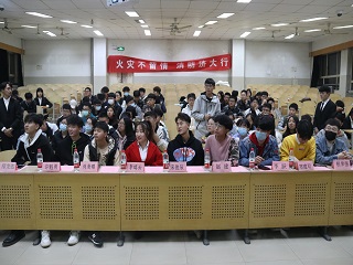 本次消防知识竞赛以现场答题的形式展开,工作人员将题目以PPT的形式呈现在屏幕上,各个题目回答完毕后都会展示正确答案,其中的题目以消防安全理论和基础知识为主要内容。答题环节分为必答题、抢答题、风险题三个部分。答题过程中,参赛选手热情高涨,比赛紧张而有条不紊地进行,各个队伍的选手经过了认真的准备,展现了精彩的答题现场。答题环节结束后,大屏幕上播放了“消防宣传视频”,更加生动形象而具有教育意义的让同学们了解到更多的消防安全知识。最后统计结果得出后,由主持人宣布比赛成绩和获奖人员名单,随后主持人邀请主席们为获奖队伍颁奖并合影留念。