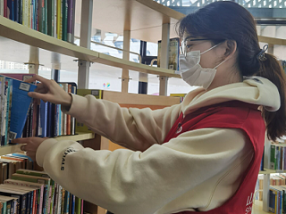 下午两点,志愿者们准时来到市图书馆,鉴于疫情防控期间,他们佩戴口罩并由工作人员测量体温正常之后有序进入。首先在图书馆管理人员的解说下了解每一项任务的具体操作流程,随后由负责人分配并明确个人任务,志愿工作便有条不紊的开展了。志愿者们主要进行的是阅读者管理和书籍归位两方面的工作,他们通过负责借书区还书书目的整理和上架工作,将图书上架,排列,并为读者寻找图书,维护阅览区秩序,旨在为大家营造一个安静舒适的读书环境。其实排书并整理图书是一个脑力兼体力活动的工作,志愿者们不仅要熟悉书架的位置与书目的排列规则,而且还要及时地将错书归位。面对种类繁多的书目和繁琐的工作,志愿者们仍细心做好一切。这样辛苦了半天后,志愿者们也深深地体会到了图书管理员的劳苦。最后此次活动的成员们在图书馆门前合影留念,结束这非常有意义的志愿服务工作。