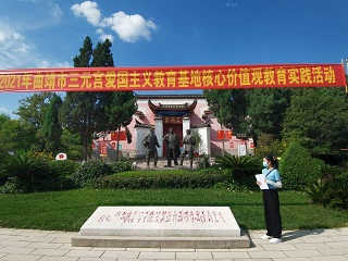 实践团队队长袁楚然与队员高子轩、钟力杰、吴柏南、李中正、管鑫宇、颜鸿翔等一行人前往曲靖市麒麟区,参观三元宫爱国主义教育基地,采访三元宫爱国主义教育基地负责人,参与部分讲解工作,深入领会学习党的光辉历史以及革命先辈的高尚品格和爱国主义精神。