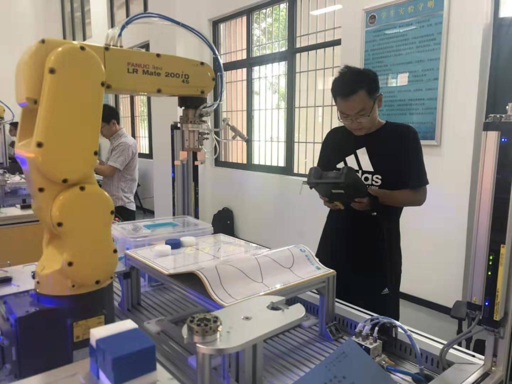 的“互联网+中国制造 2025”产教融合创新基地,培训采取封闭式、专题讨论、理论与实操相结合等方式,由全球著名机器人制造先进企业FANUC资深专家讲解现场编程和离线编程仿真等内容。通过这次培训,麻豆av教师提升了自身专业技术能力和机器人实操能力,掌握了FANUC机器人现场编程、离线编程与仿真等技能,取得FANUC机器人培训中心认证的《FANUC机器人授权培训中心(华晟智造)培训证书》,进一步提高了相关领域教学、科研工作能力和水平。