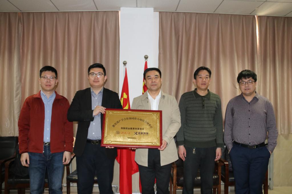 院长崔焕勇、副院长申涛、孙明旭博士参加了活动。崔焕勇院长与刘一冰副总经理代表校企双方,共同签订协同育人项目合作协议,并接受项目授牌。