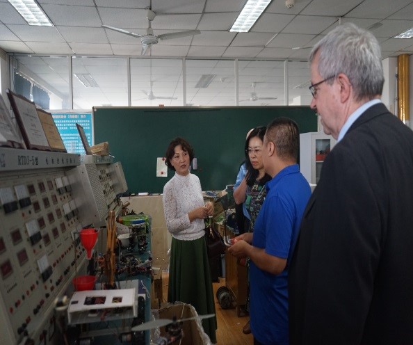 的热情接待表示感谢,分别介绍了曼海姆大学在企校双元教育的经验和效果,德国莱茵乃卡中国文化中心协会会长刘元华(Yuanhua Liu-Siech) 介绍了中德高等教育合作情况,并提出双方合作建议。