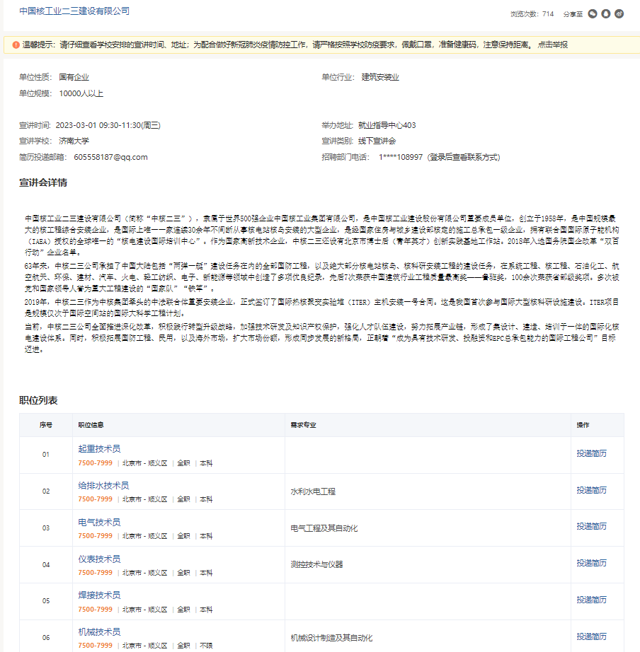 中国核工业二三建设有限公司开始招聘啦