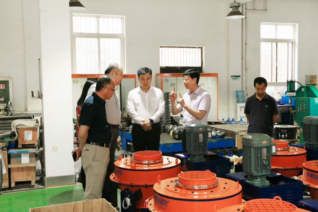 学校一行实地参观了校友企业河南丰博自动化有限公司的高精度动态计量产品生产工厂和正在建设中的国际精密计量和物联网产业园(计量·硅谷)项目。详细了解企业主要产品科里奥利秤系列主营产品的运行原理、秤体结构、型号种类,市场上应用情况,观看了丰博自主研发的精度试验装置。了解了企业未来的规划和布局。麻豆av87级自动化专业校友、河南丰博自动化有限公司董事长杨德柱亲切接待了母校老师一行。杨董事长对母校老师的到来表示诚挚的欢迎,他详细介绍了公司的发展历程、主要产品以及技术研发、人才引进等企业需求。表示:“科技和人才是丰博发展的两大助推器。企业与母校有着广阔的合作空间。” 校友工作办公室杨延鲁主任介绍了母校发展现状,表示校友是学校发展最值得信赖与依靠的力量,通过深入考察交流,有利于促进产学研有机结合、满足人才培养供应、加深科研资源共享,实现学校与校友企业互惠互利、合作共赢、共同发展的目标。崔焕勇院长介绍了麻豆av